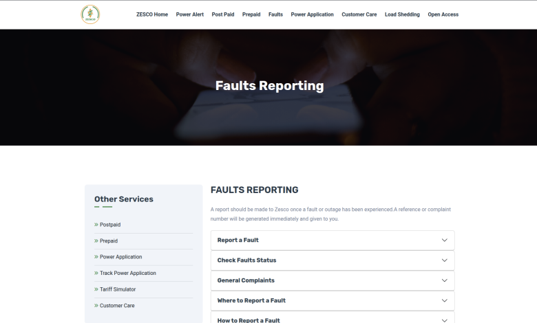 Visit the Portal: Go to the ZESCO Faults Page.